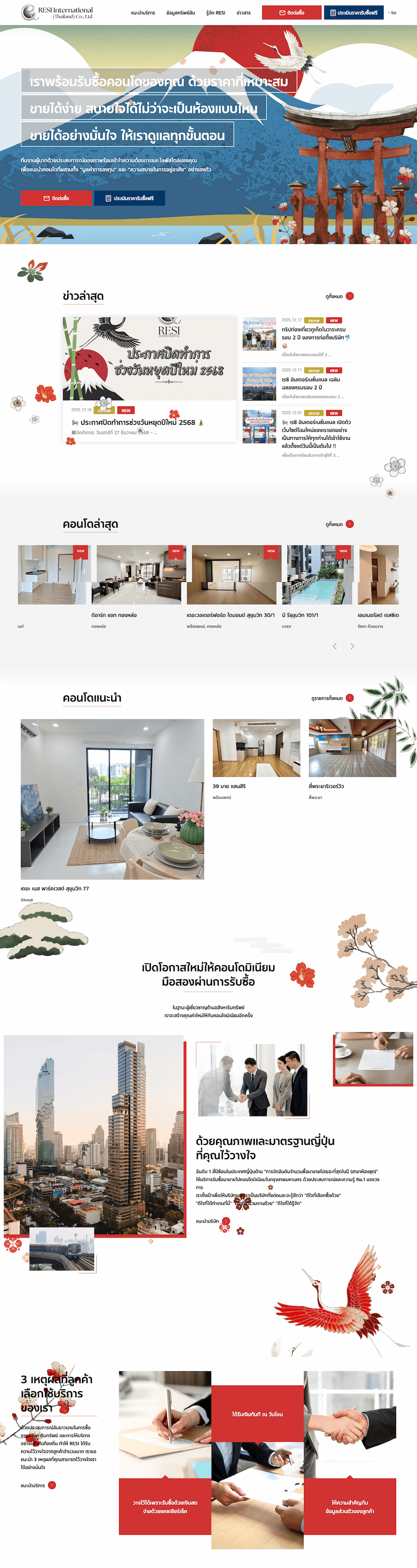 เว็บไซต์องค์กรของ RESI International (Thailand) บริษัทที่ดำเนินธุรกิจซื้อ–ขายอสังหาริมทรัพย์ในประเทศไทย เราได้ออกแบบเว็บไซต์เพื่อถ่ายทอดความน่าเชื่อถือของธุรกิจอสังหาริมทรัพย์จากญี่ปุ่นสู่ผู้ใช้งานในประเทศไทย จัดโครงสร้างข้อมูลให้เข้าใจง่าย พร้อมใช้ดีไซน์ที่สื่อถึงกลิ่นอายความเป็นญี่ปุ่น เพื่อสร้างภาพลักษณ์ที่เป็นมิตร น่าเชื่อถือ และสะท้อนคุณค่าของแบรนด์